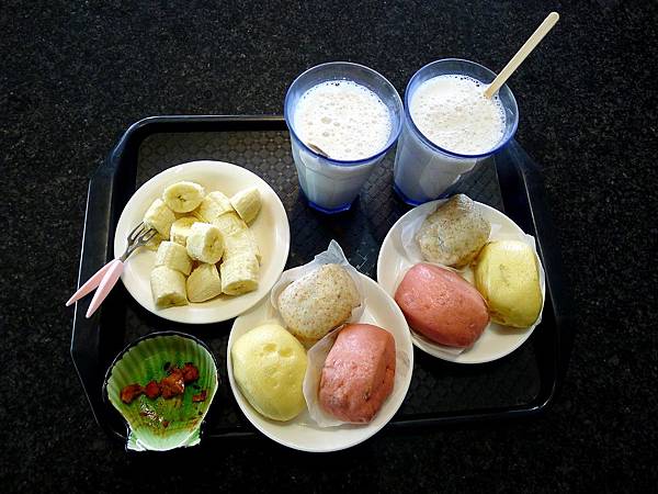 隔天早餐還有附上老闆娘親手做的手工饅頭與現磨豆漿